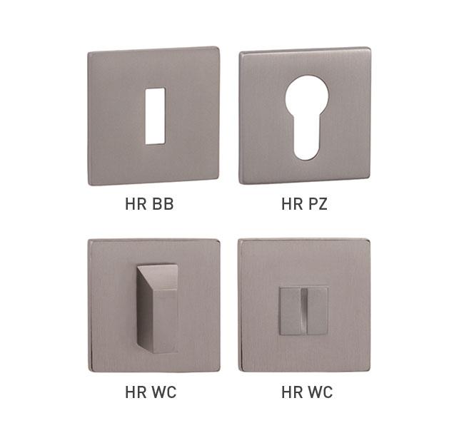 V nabídce naleznete hranatý otvor pro interiérový klíč (BBQ), otvor pro cylindrickou vložku (PZ) nebo WC set s vmontovaným klíčem.