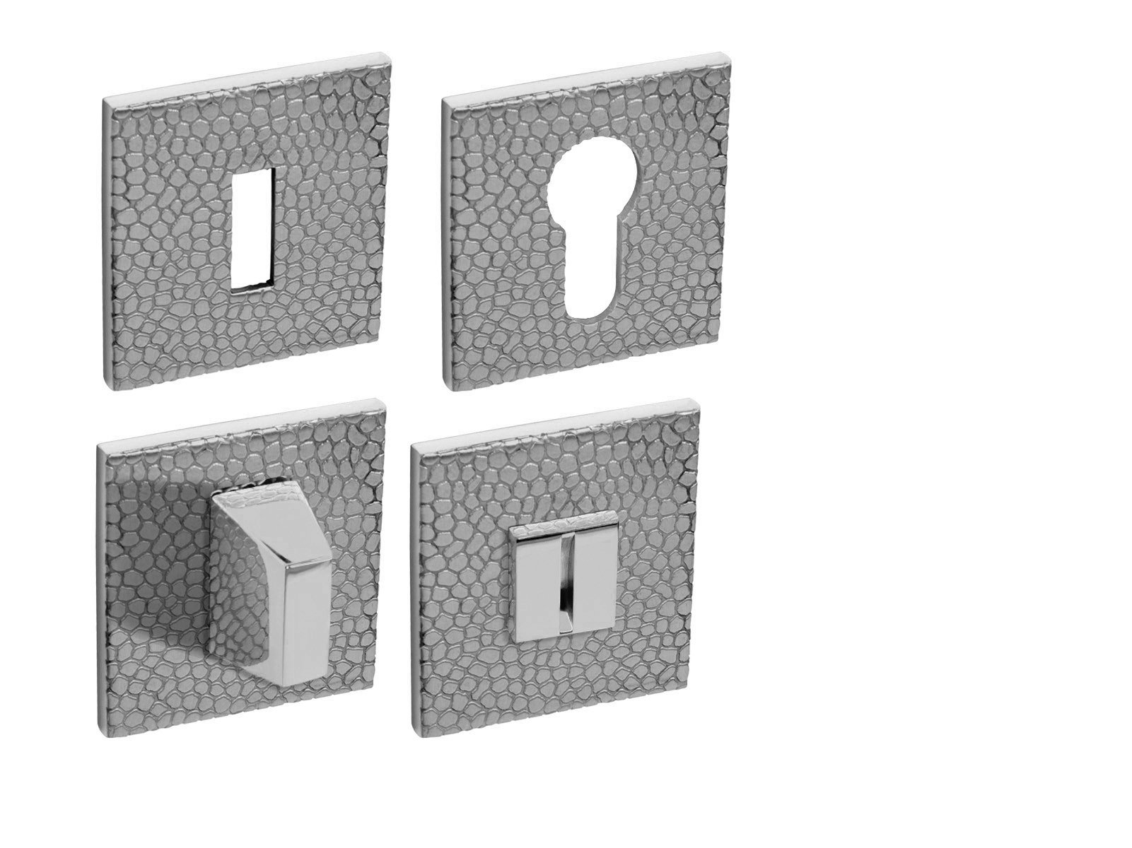 Hranatá rozeta je vyrobená z materiálů vysoké kvality - mosaz a je povrchově upravená. Rozeta má rozměry 52 mm x 52 mm, tloušťku jen 5 mm a hranatý otvor pro interiérový klíč (BBQ), otvor pro cylindrickou vložku (PZ) anebo WC set s vmontovaným klíčem.