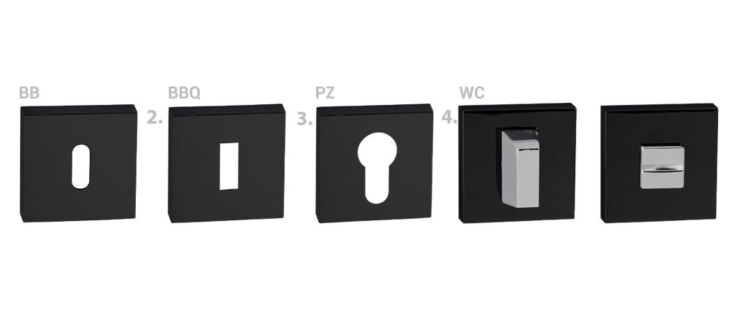 Hranatá rozeta je vyrobena z materiálů vysoké kvality - mosaz a je povrchově upravena. Rozeta má rozměry 52 mm x 52 mm, tloušťku 11 mm a oválný otvor pro interiérový klíč (BB), hranatý otvor pro interiérový klíč (BBQ), otvor pro cylindrickou vložku (PZ) nebo WC set s vmontovaným klíčem. Balení obsahuje 2 kusy rozet (pár) a rozety WC jsou v balení jako set.