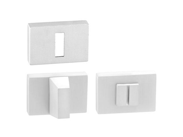 Obdélníková rozeta je vyrobena z materiálů vysoké kvality - mosaz / zamak a je povrchově upravena. Rozeta má rozměry 52 mm x 35 mm a hranatý otvor pro interiérový klíč (BBQ) nebo WC set s vmontovaným klíčem. Balení obsahuje 2 kusy rozet (pár) a rozety WC jsou v balení jako set.