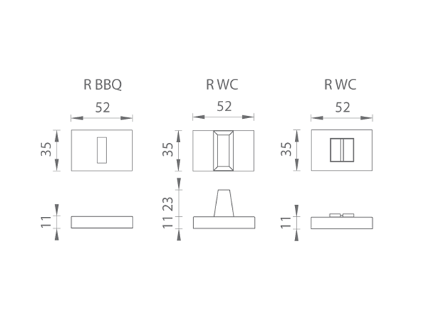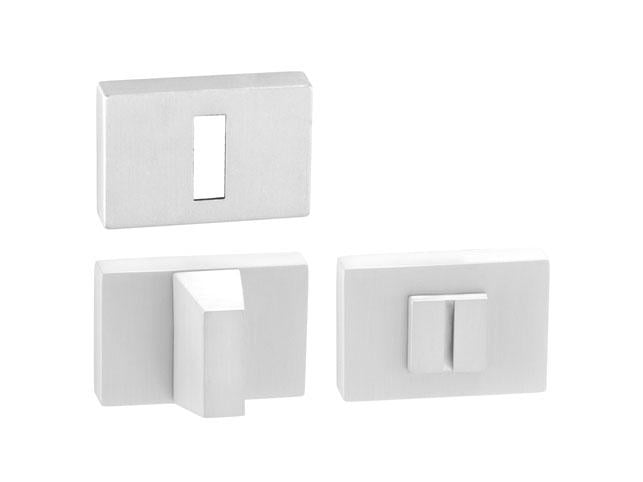 Obdélníková rozeta je vyrobena z materiálů vysoké kvality - mosaz / zamak a je povrchově upravena. Rozeta má rozměry 52 mm x 35 mm a hranatý otvor pro interiérový klíč (BBQ) nebo WC set s vmontovaným klíčem. Balení obsahuje 2 kusy rozet (pár) a rozety WC jsou v balení jako set.
