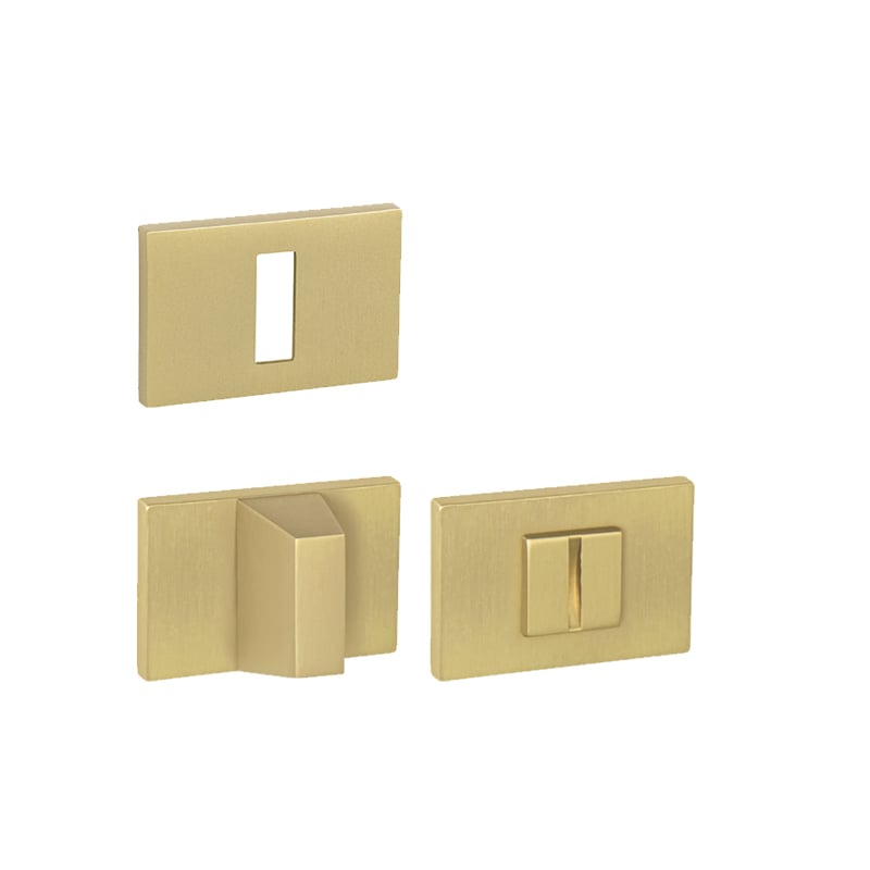 Rozeta má hranatý otvor pro interiérový klíč (BBQ) anebo WC set s vmontovaným klíčem. Balení obsahuje 2 kusy rozet (pár) a rozety WC jsou v balení jako set.