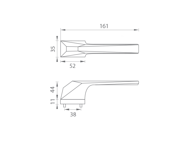 Rozetová klika na interiérové dveře s obdélníkovou rozetou je vyrobena z materiálů vysoké kvality - zamak a je povrchově upravena. Rozeta má rozměry 52 mm x 35 mm a standardní tloušťku 11 mm. Samotná rozeta je součástí designu kliky.