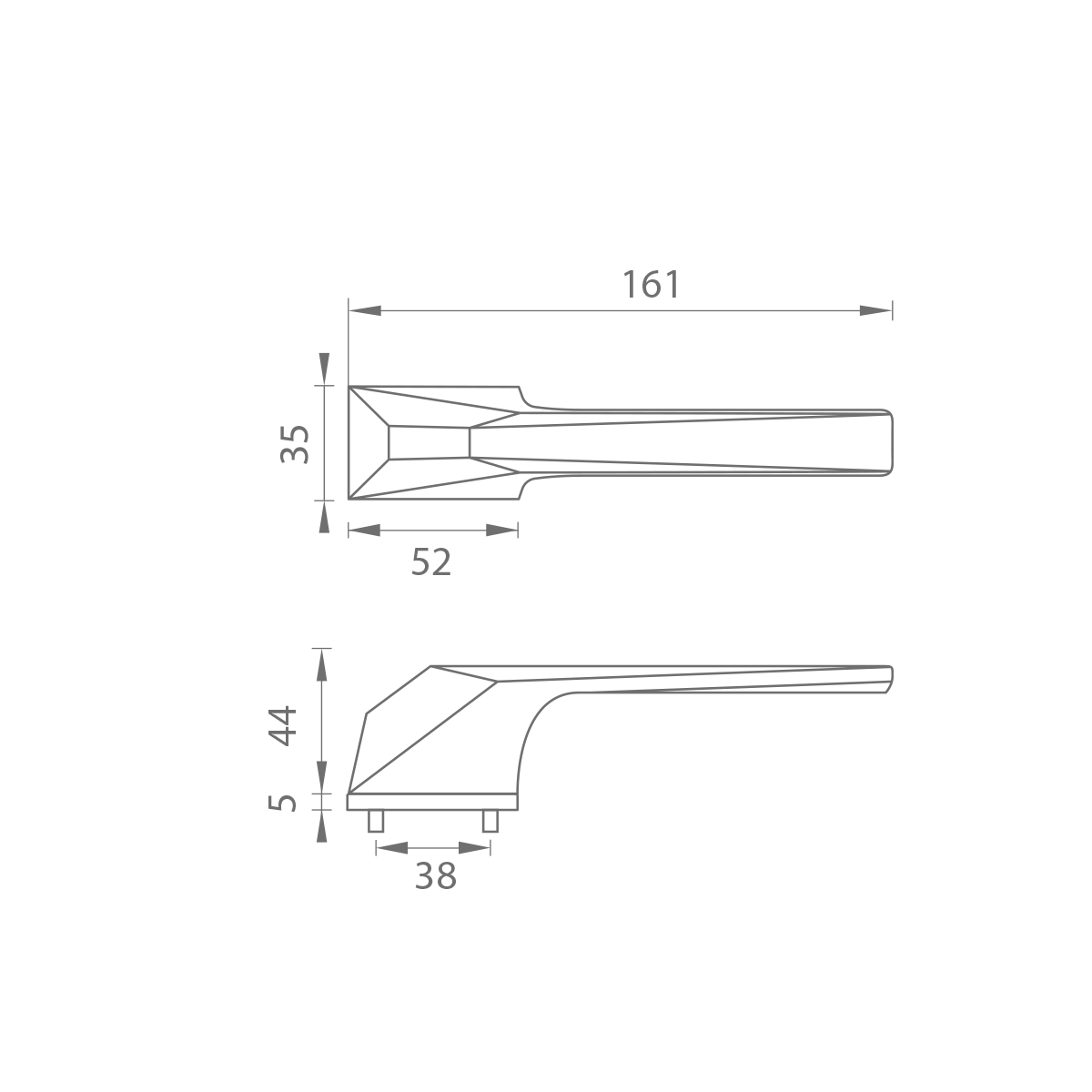 Rozetová klika na interiérové ​​dveře s obdélníkovou rozetou je vyrobena z materiálů vysoké kvality - zamak a je povrchově upravena. Rozeta má rozměry 52 mm x 35 mm a tloušťku jen 5 mm. Samotná rozeta je součástí designu kliky.