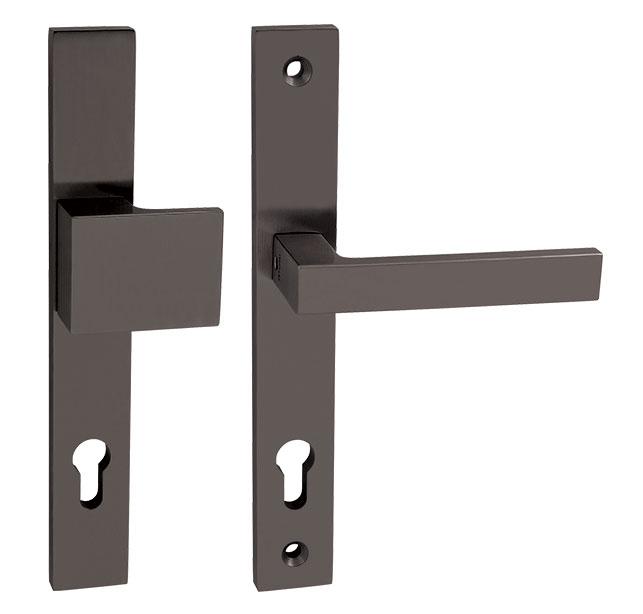 Zpevněné kování vyvinuté pro hliníkové, plastové nebo dřevěné dveře s úzkým profilem, kde se nevyžaduje bezpečnostní certifikát. Povrchová úprava chrom lesklý, chrom broušený, bílá, černá jsou vhodné i do exteriéru.