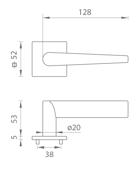 Rozetová klika na interiérové ​​dveře s hranatou rozetou je vyrobena z materiálů vysoké kvality - mosaz a je povrchově upravena. Rozeta má rozměry 52 mm x 52 mm a tloušťku pouze 5 mm.