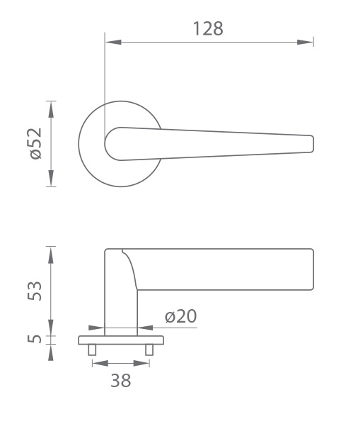Rozetová klika na interiérové ​​dveře s kulatou rozetou je vyrobena z materiálů vysoké kvality - mosaz a je povrchově upravena. Rozeta má průměr 52 mm a tloušťku pouze 5 mm.