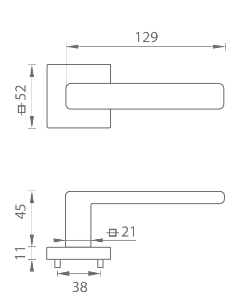 Rozetová klika na interiérové dveře s hranatou rozetou je vyrobena z materiálů vysoké kvality - mosaz a je povrchově upravena. Rozeta má rozměry 52 mm x 52 mm a standardní tloušťku 11 mm.
