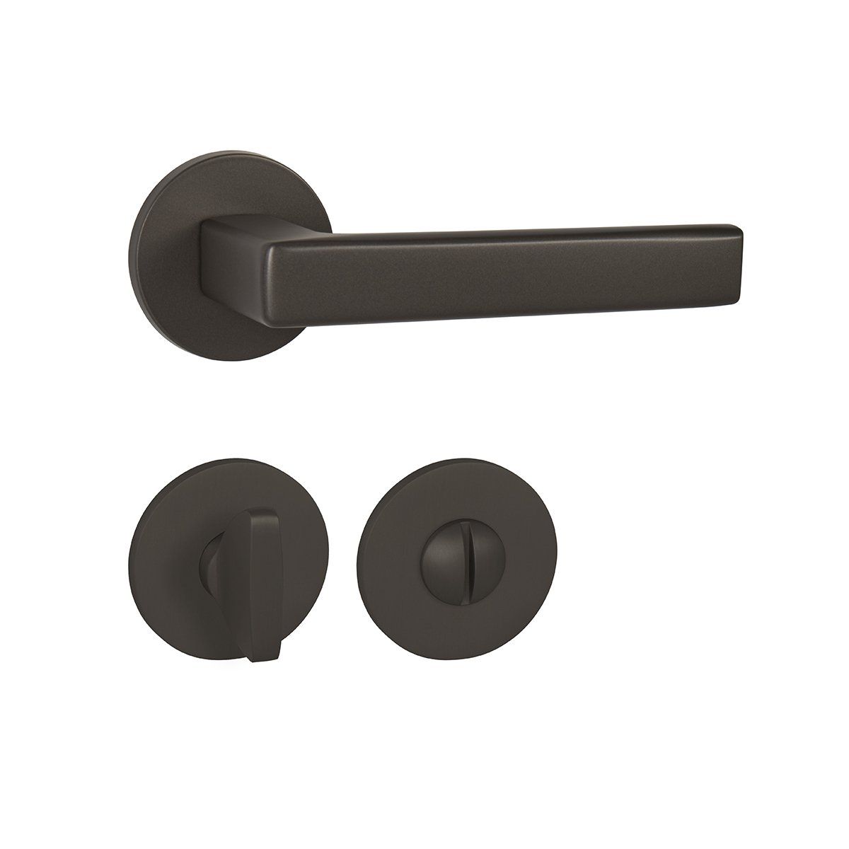 Rozetová klika na interiérové ​​dveře s kulatou rozetou je vyrobena z materiálů vysoké kvality - mosaz a je povrchově upravena. Rozeta má průměr 52 mm a tloušťku pouze 5 mm.