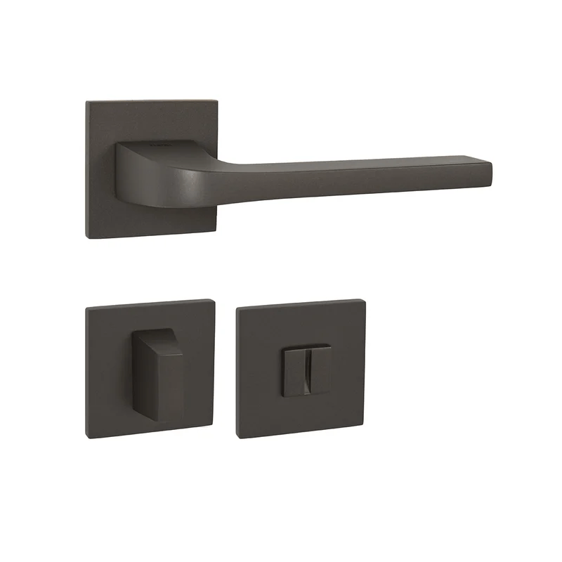 Rozetová klika na interiérové ​​dveře s hranatou rozetou je vyrobena z materiálů vysoké kvality - zamak a je povrchově upravena. Rozeta má rozměry 52 mm x 52 mm a tloušťku pouze 5 mm.