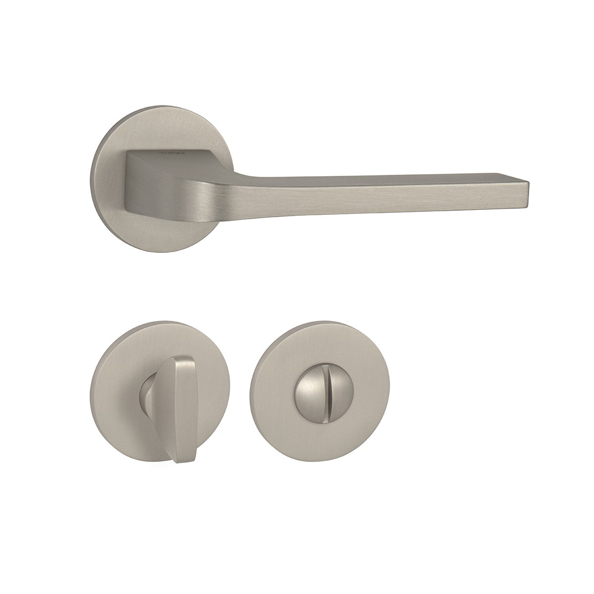 Rozetová klika na interiérové ​​dveře s kulatou rozetou je vyrobena z materiálů vysoké kvality - zamak a je povrchově upravena. Rozeta má průměr 52 mm a tloušťku pouze 5 mm.
