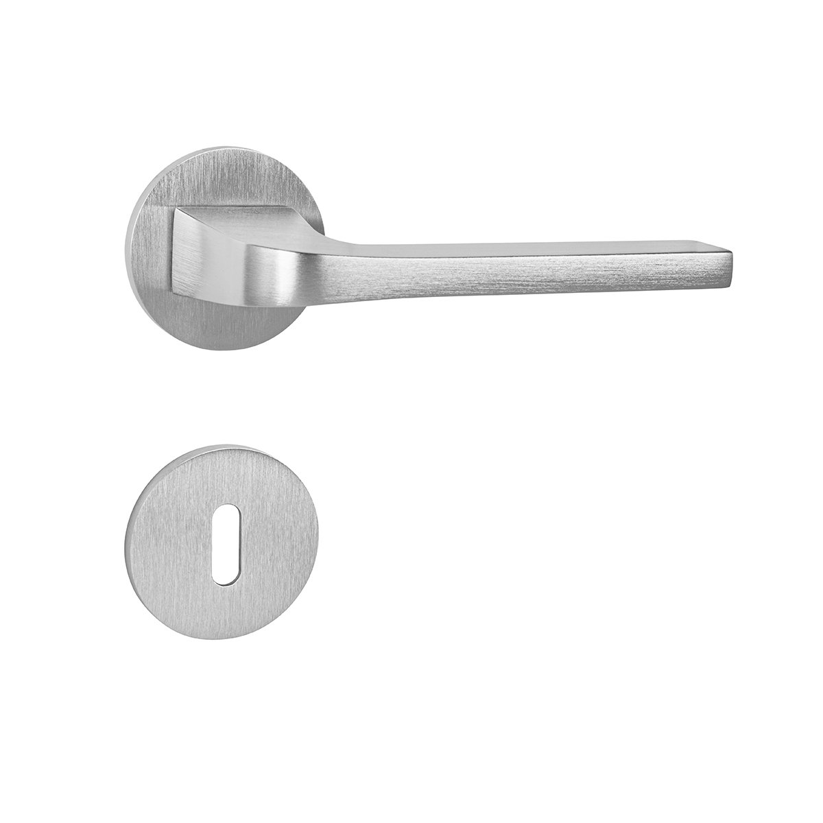 Rozetová klika na interiérové ​​dveře s kulatou rozetou je vyrobena z materiálů vysoké kvality - zamak a je povrchově upravena. Rozeta má průměr 52 mm a tloušťku pouze 5 mm.