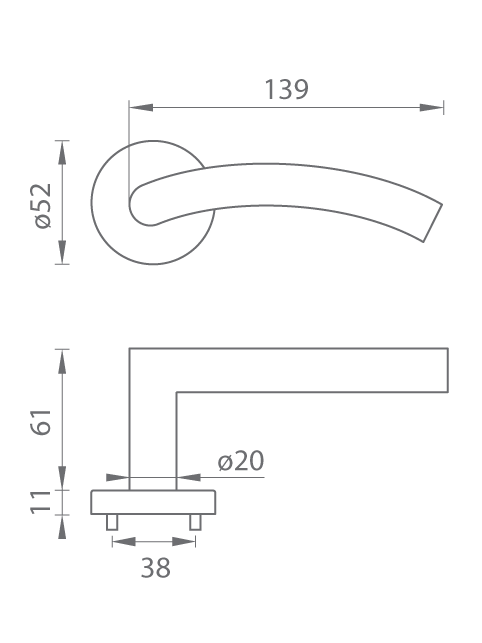 Rozetová klika na interiérové ​​dveře s kulatou rozetou je vyrobena z materiálů vysoké kvality - zamak a je povrchově upravena. Rozeta má průměr 52 mm a standardní tloušťku 11 mm.