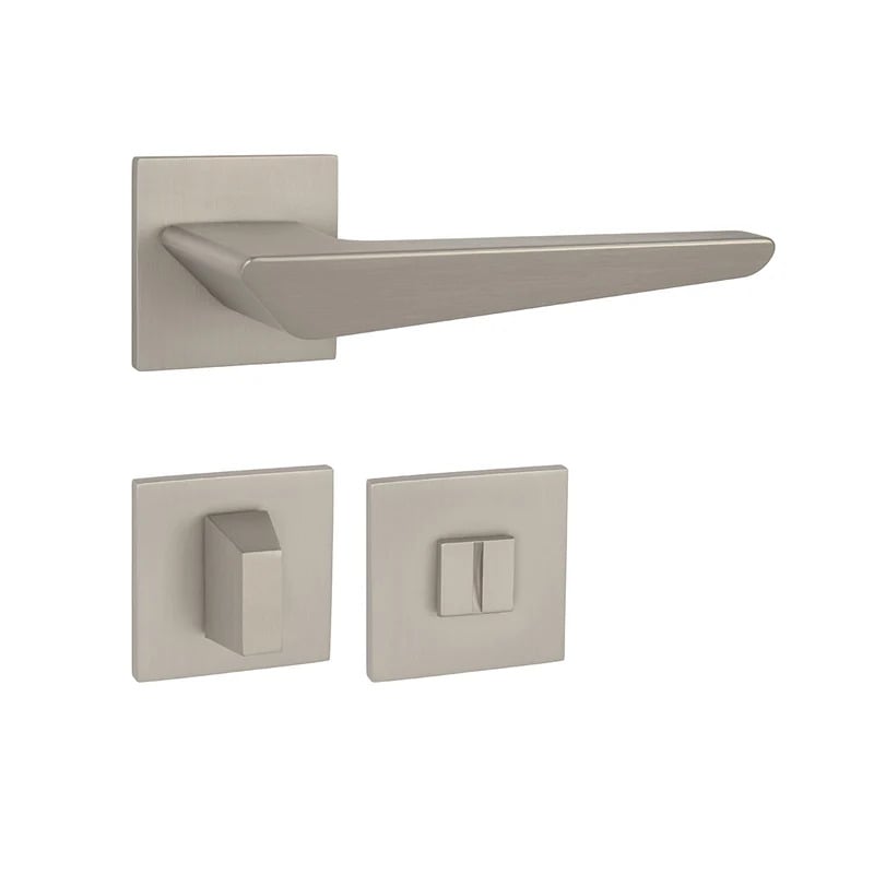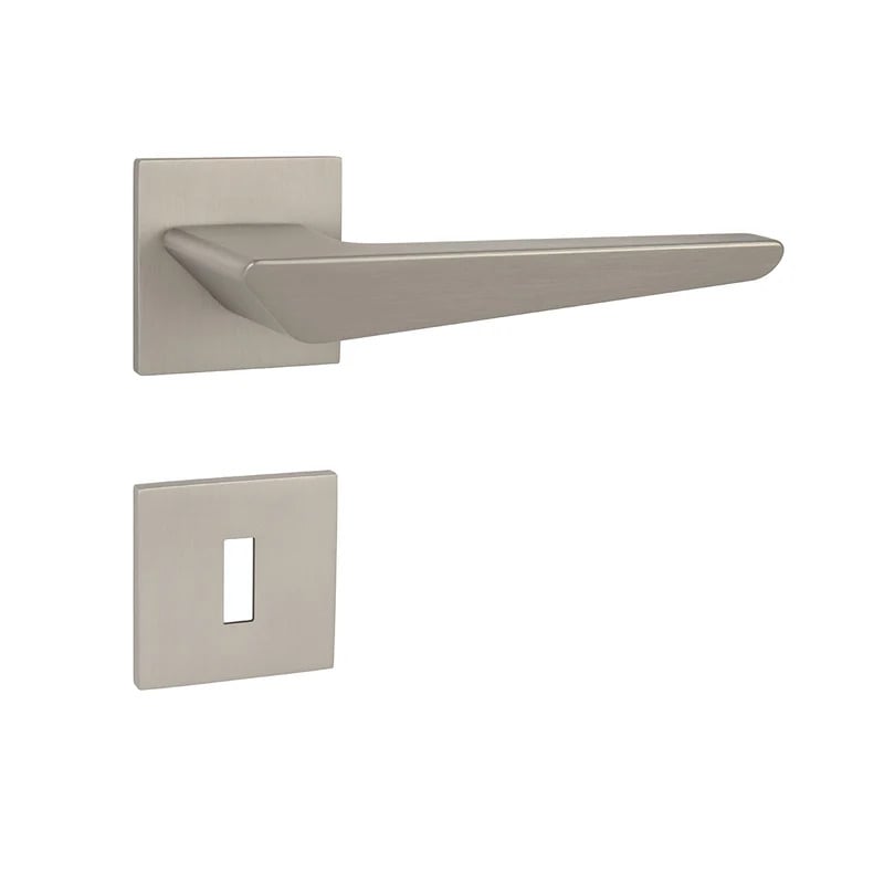Rozetová klika na interiérové ​​dveře s hranatou rozetou je vyrobena z materiálů vysoké kvality - zamak a je povrchově upravena. Rozeta má rozměry 52 mm x 52 mm a tloušťku pouze 5 mm.