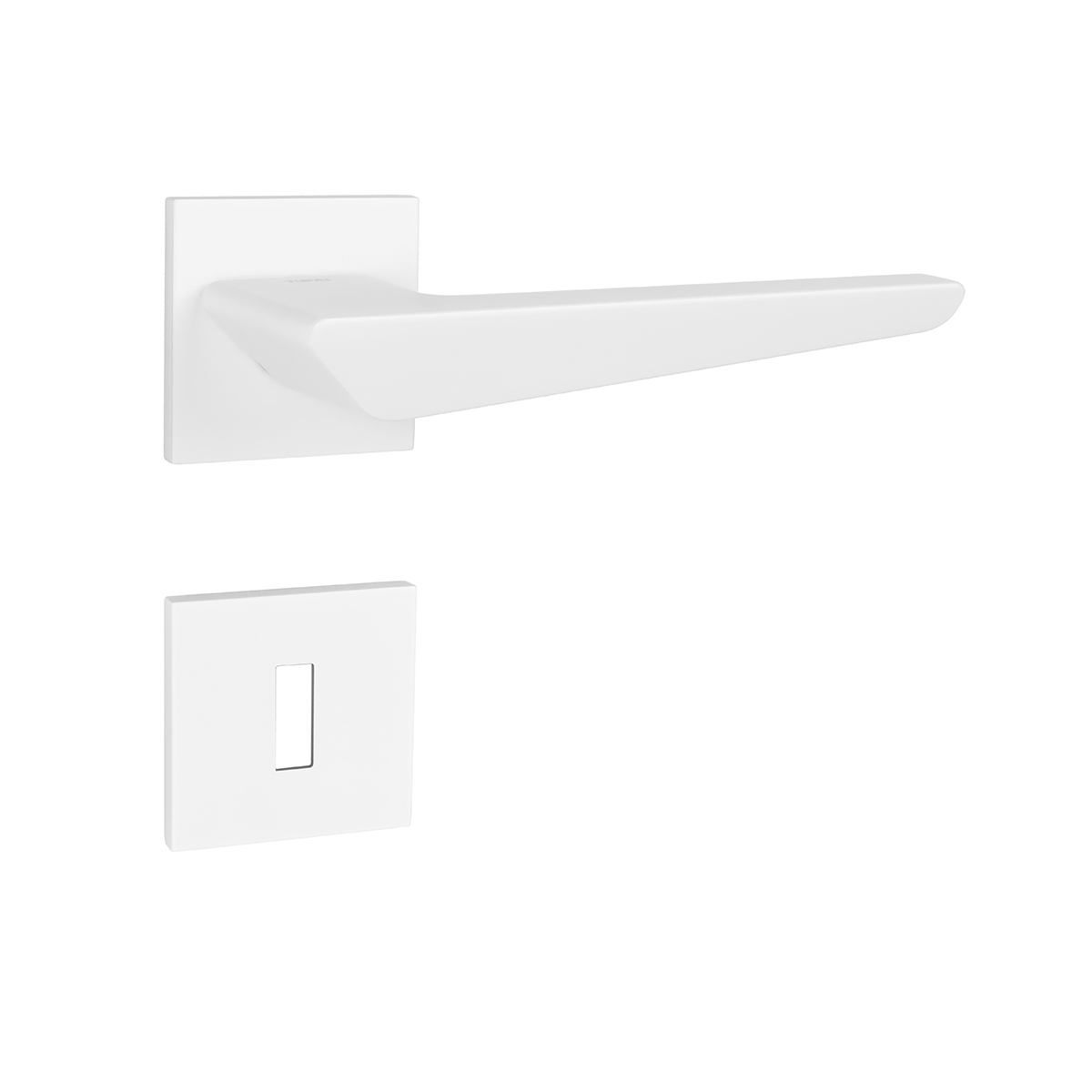 Rozetová klika na interiérové ​​dveře s hranatou rozetou je vyrobena z materiálů vysoké kvality - zamak a je povrchově upravena. Rozeta má rozměry 52 mm x 52 mm a tloušťku pouze 5 mm.