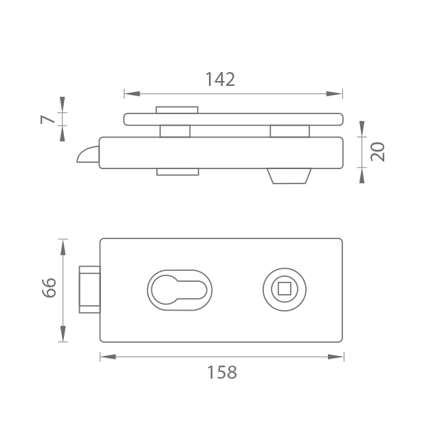 Kování na skleněné dveře je vyrobeno z materiálů vysoké kvality - mosaz / zamak a je povrchově upraveno. Kování má rozměry 158 mm x 66 mm.