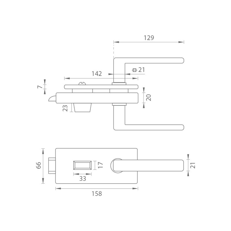 Zámek je vhodný pro skleněné dveře s tloušťkou 8 – 10 mm.  Otvor pro kliku obsahuje vymezovací mechanismus pro maximální eliminování vůle čtyřhranu. Mechanismus zámku umožňuje nastavení síly pružiny a napomáhá udržování kliky v horizontální poloze.