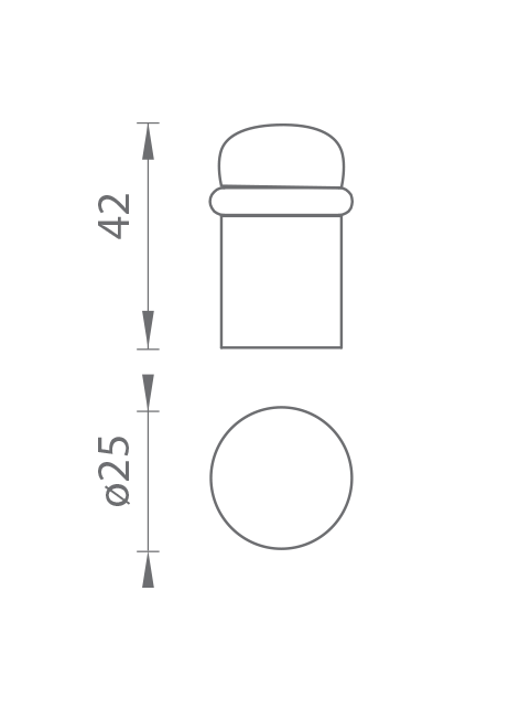 Zarážka má průměr 25 mm a výšku 42 mm.