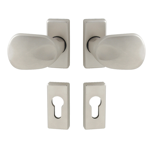 Vyosené madlo ke klikám na dveře je vyrobeno z hliníku a je povrchově upraveno. Madlo ke klikám obsahuje pružinovou mechaniku a nabízíme ho v provedení madlo pevné (kus) nebo madlo otočné (kus). Z hlediska odolnosti povrchové úpravy je odolné vůči povětrnostním podmínkám (slunce, voda, mráz) a tudíž je vhodné do exteriéru. Poskytujeme prodlouženou záruku 5 let.