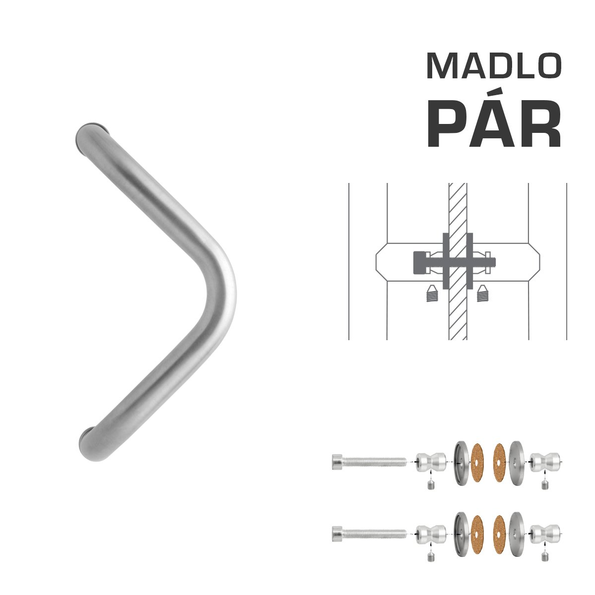 WA - MADLO M6 WA/A-S-SKLO pár Stříbrná (RAL 9006) - Ø 30 mm - 300 mm
