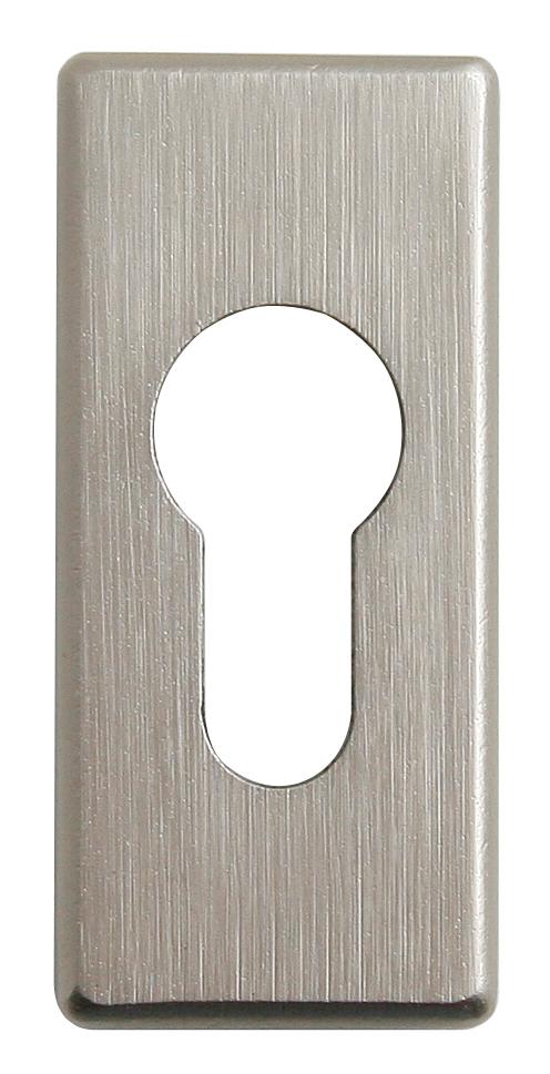 Úzká hranatá rozeta je vyrobena z hliníku a je povrchově upravena. Rozeta má rozměry 31 mm x 68 mm, tloušťku 12 mm a otvor pro cylindrickou vložku (PZ). Balení obsahuje 2 kusy rozet (pár)