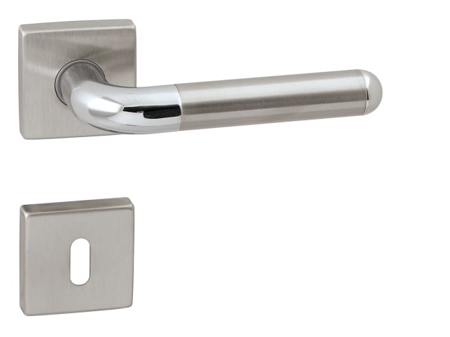 Rozetová klika na interiérové dveře s hranatou rozetou je vyrobena z vysoce kvalitní nerezavějící oceli, známé jako nerez a je povrchově upravena.